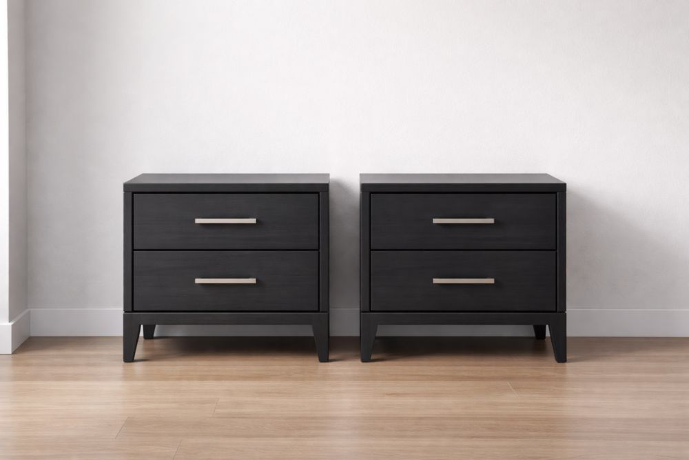 Set of 2 Black Rectangular Wooden Nightstands with Two Drawers