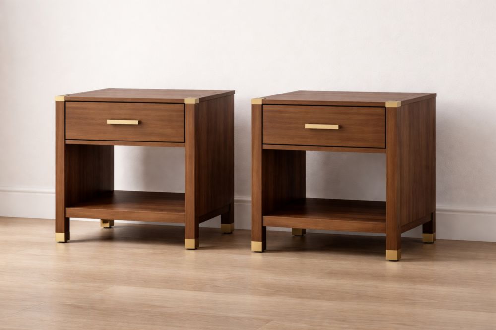 Wood Nightstand Set with Gold Accents 1 Drawer and Shelf 60x45x55cm